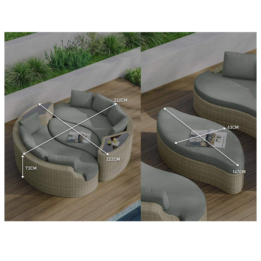 - Overall assembled daybed size: W 232cm x D 232cm x H 72cm