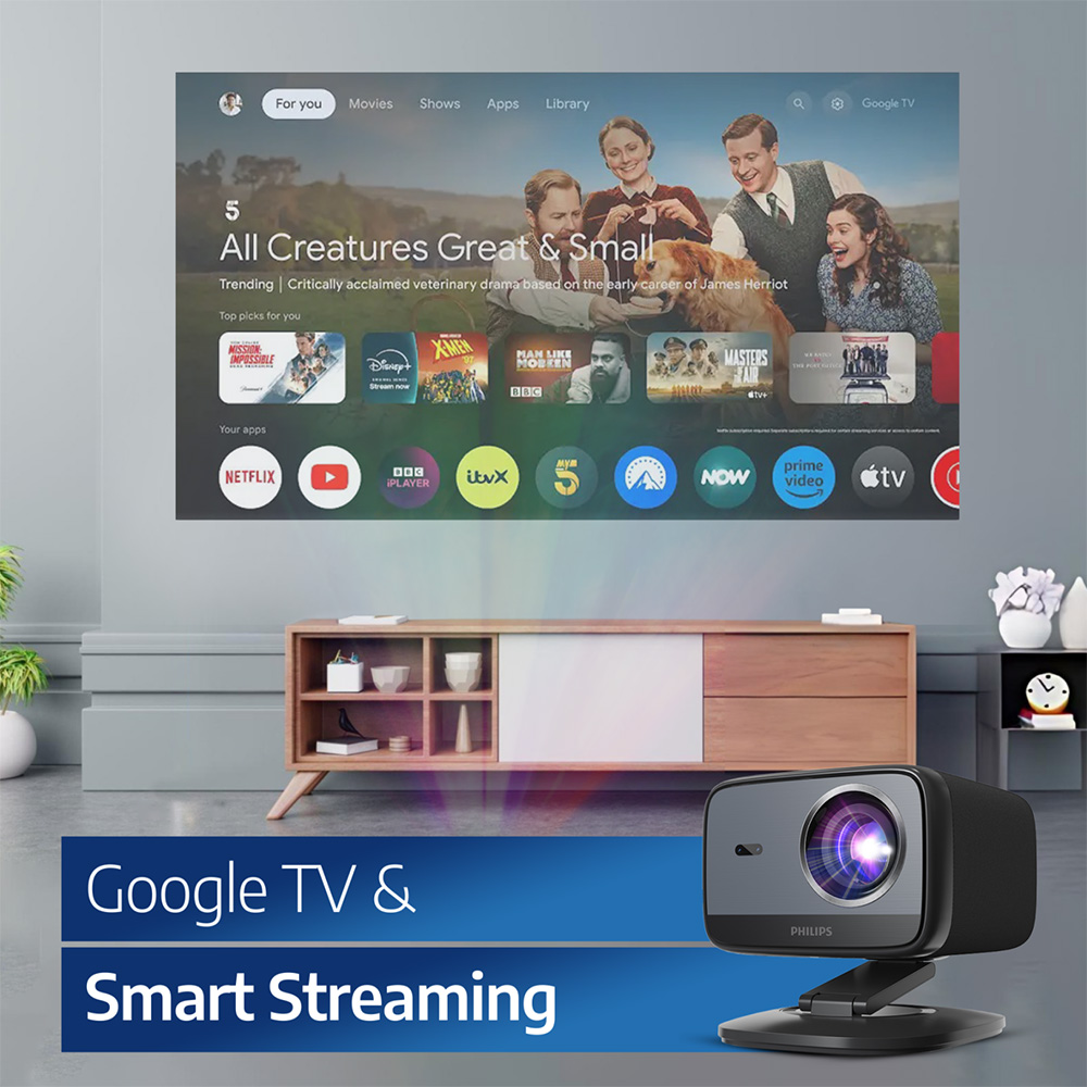 - Includes Google TV streaming device to access Apps